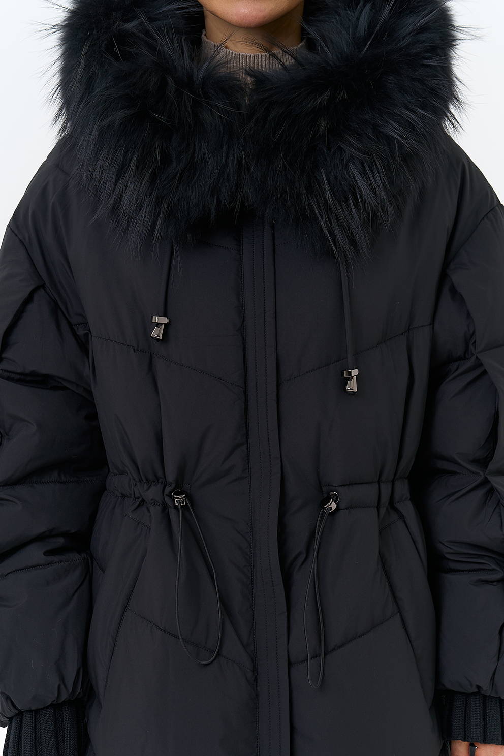Крой воротника - капюшон, отделка чернобурка