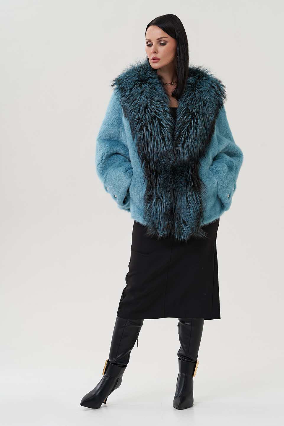 Тип ворота - V - образный воротник , отделка чернобурка