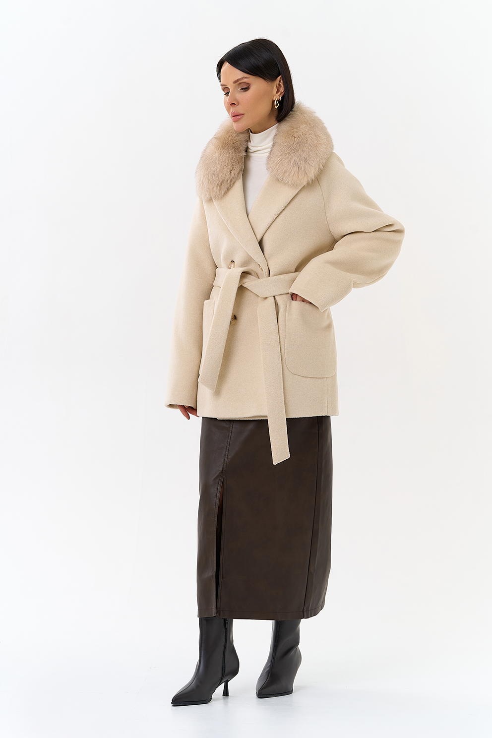 Крой воротника - английский воротник, отделка песец